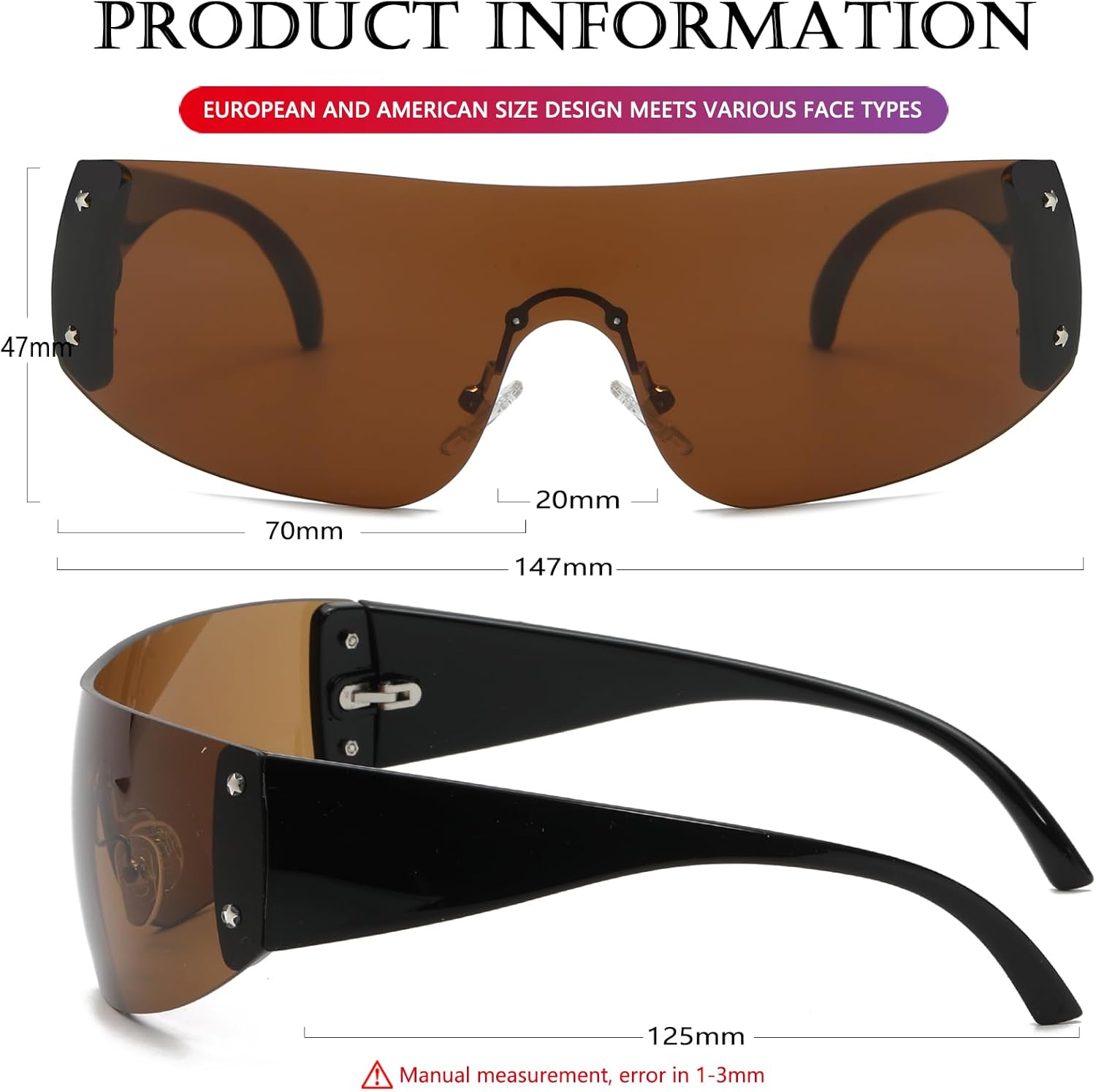 AIEYEZO Oversized Y2K Sunglasses for Women Men Trendy Retro Wrap Around Big Shield Sun Glasses