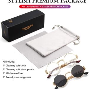 AIEYEZO Round Steampunk Sunglasses for Men Women Retro Circle Hippie Glasses Metal Frame 100% UV Blocking Lens