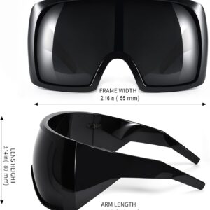 Embrace the future with Awdchny's Oversized Wrap Around Sunglasses. These futuristic shades feature a bold, bug-like shield design that wraps around your face, providing full coverage and protection from the sun's rays. Crafted with high-quality materials and 100% UV protection lenses, these sunglasses offer a true color experience and superior eye protection. Whether you're hitting the beach, attending a rave, or simply making a fashion statement, these trendy sunglasses are a must-have accessory.