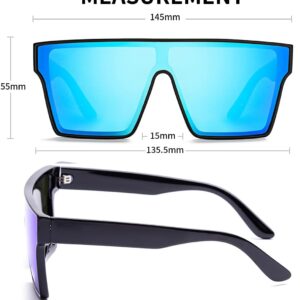 BINGKING Oversized UV400 Designer Polarized Sunglasses for Men Women Large Flat Square Trendy Mirrored Shades