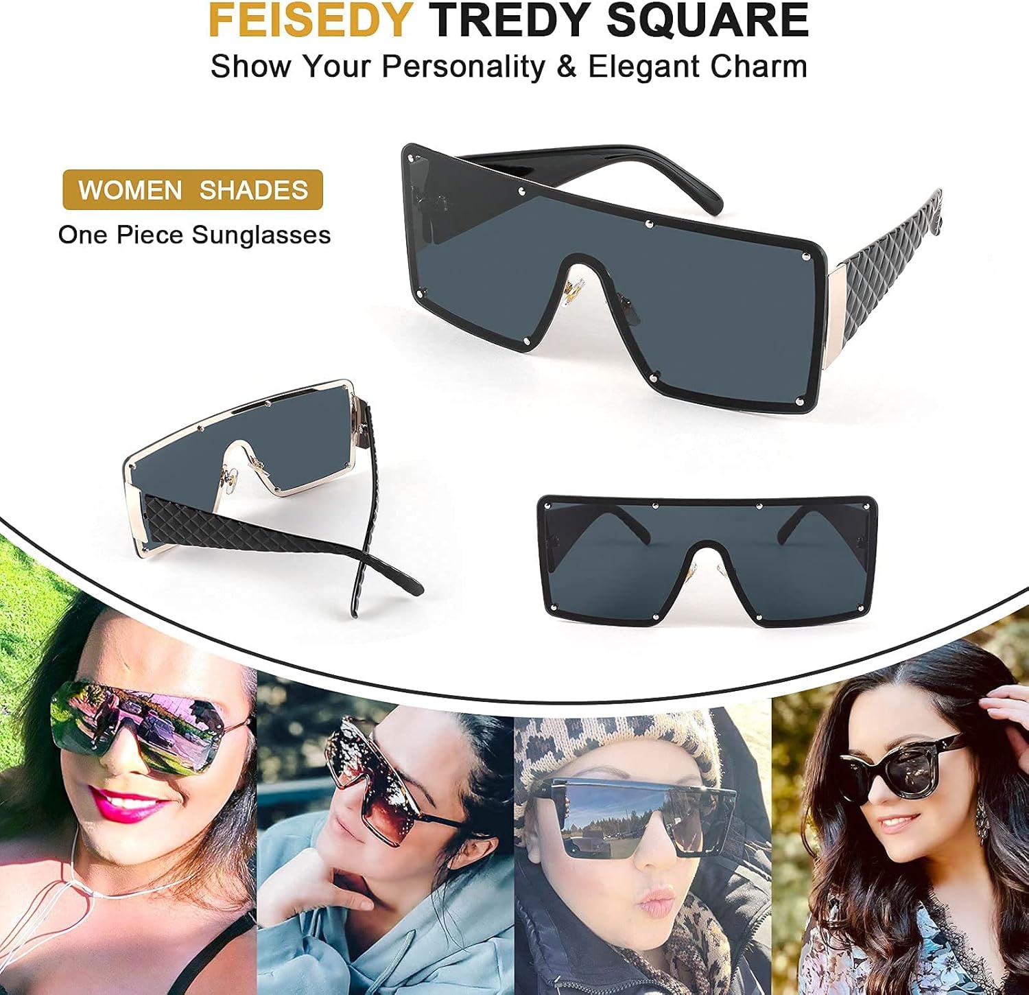 Be the first to review “FEISEDY Oversized Square Sunglasses for Women Men Flat Top Shield Sunglasses One Piece Frameless Shades B2767” Cancel reply