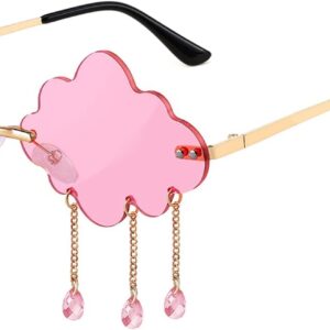 FEISEDY Retro Dripping Cloud Shaped Tassel Sunglasses Rimless Women Funny Party Disco Eyewear B2834