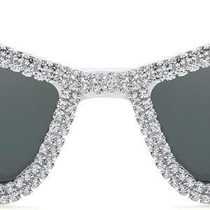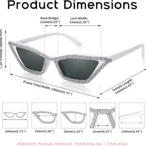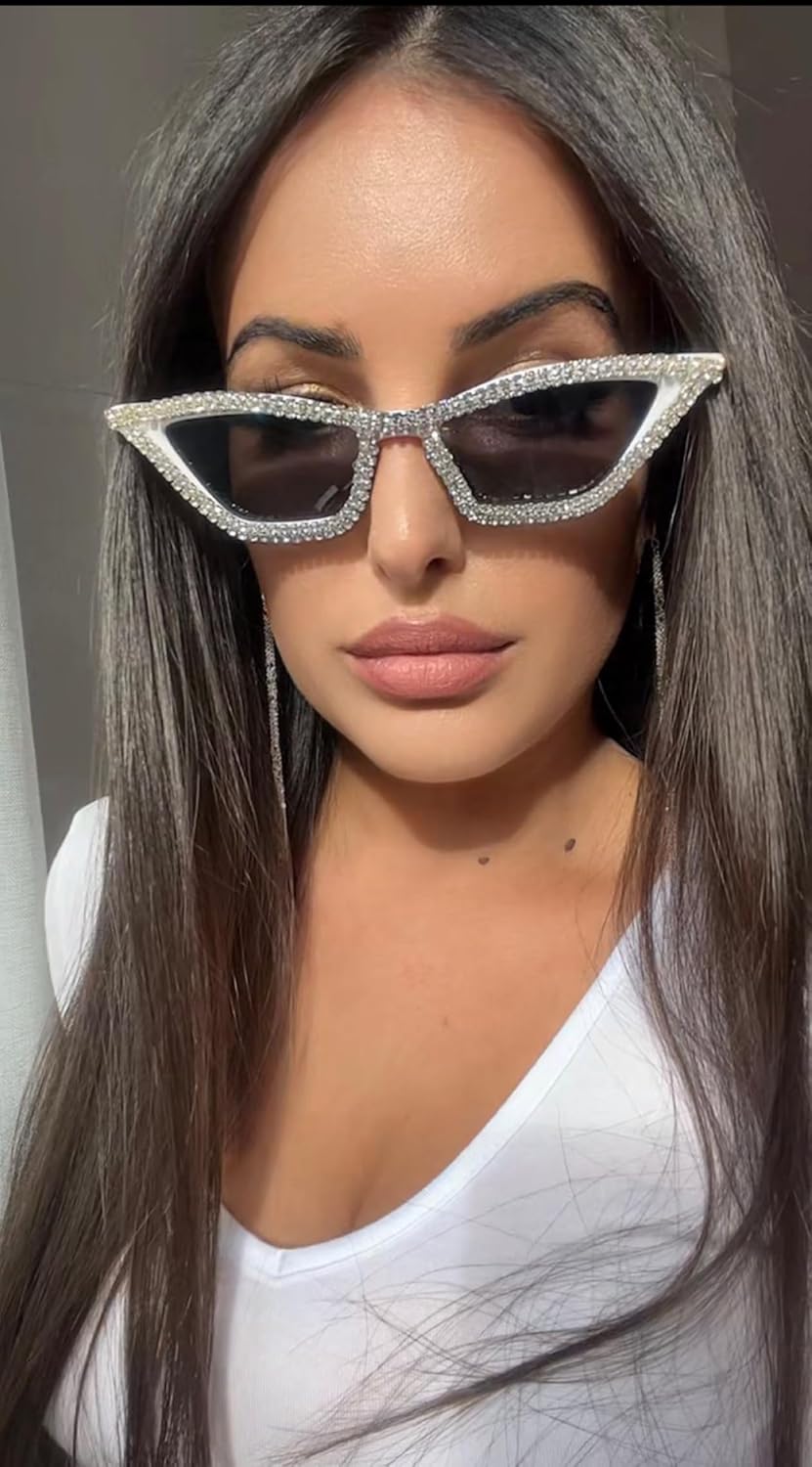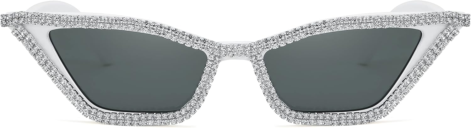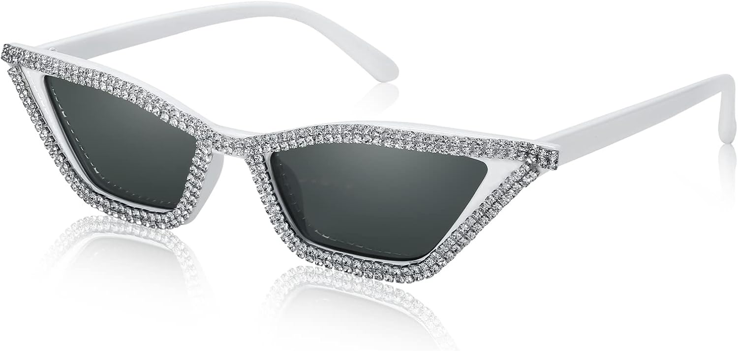 FEISEDY Small Cat Eye Sunglasses for Women Vintage Square Sparkling Crystal Trendy Retro Cateye Sunglasses B2317