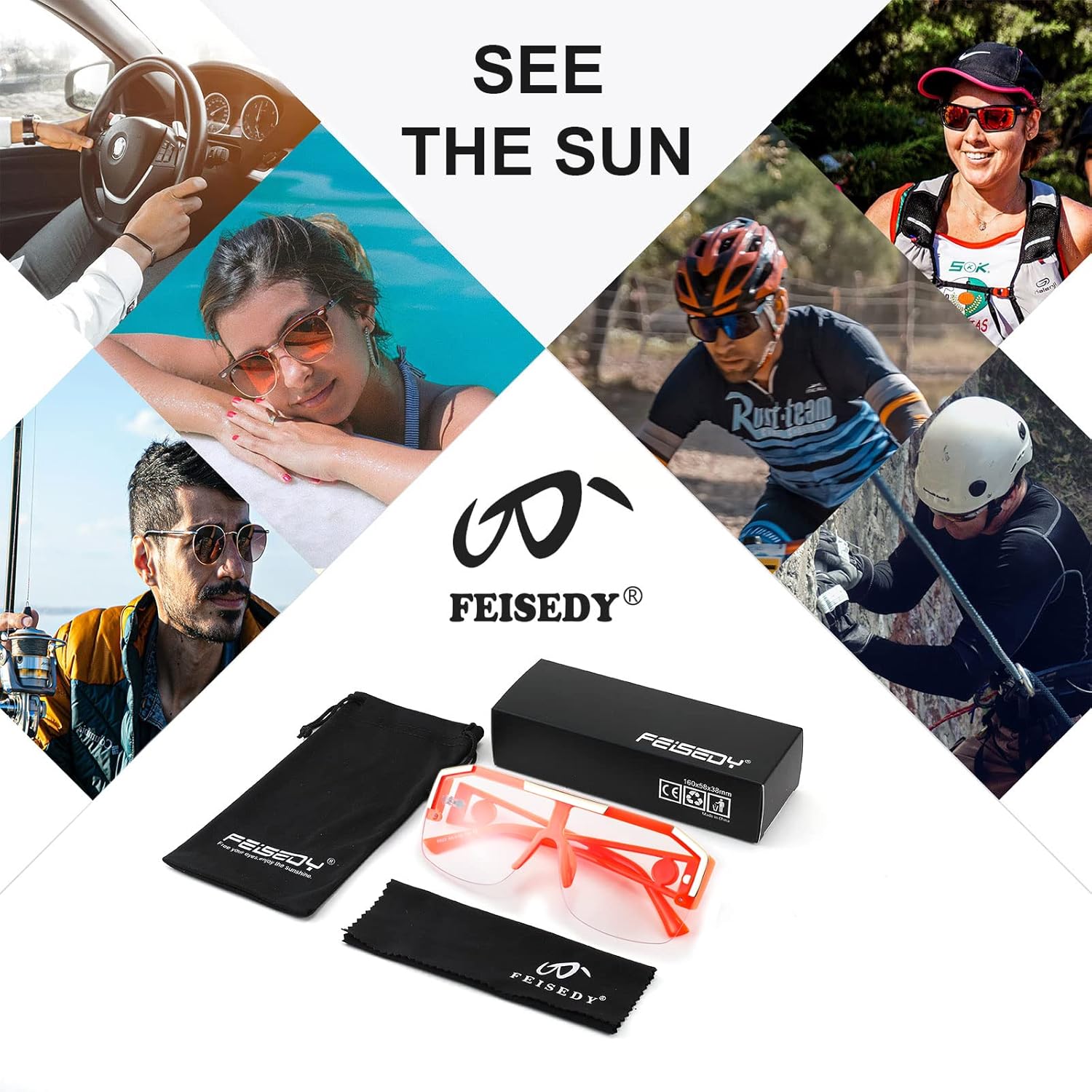 FEISEDY Square Flat Top Shield Sunglasses One Piece Frameless Stylish Women Men UV400 B2765 (Orange Frame, 73)