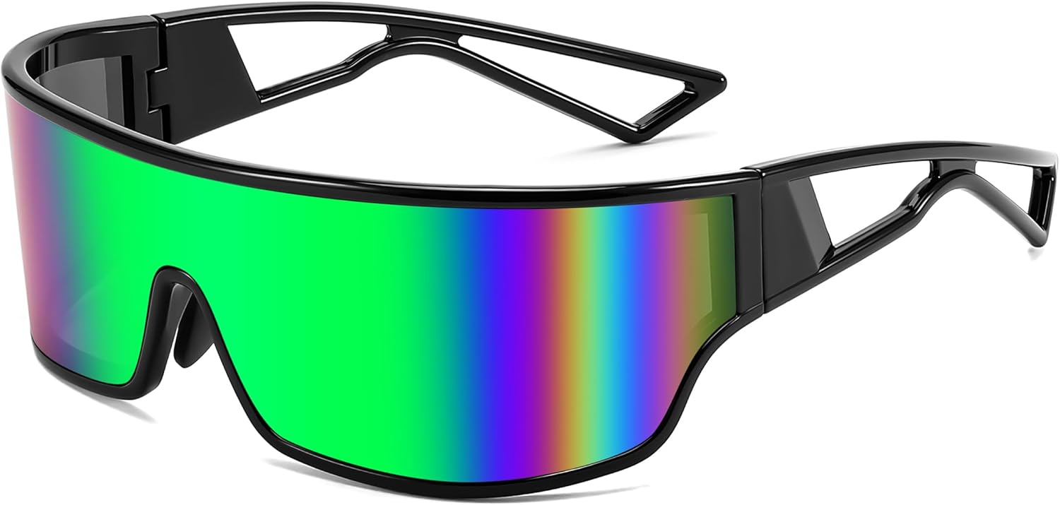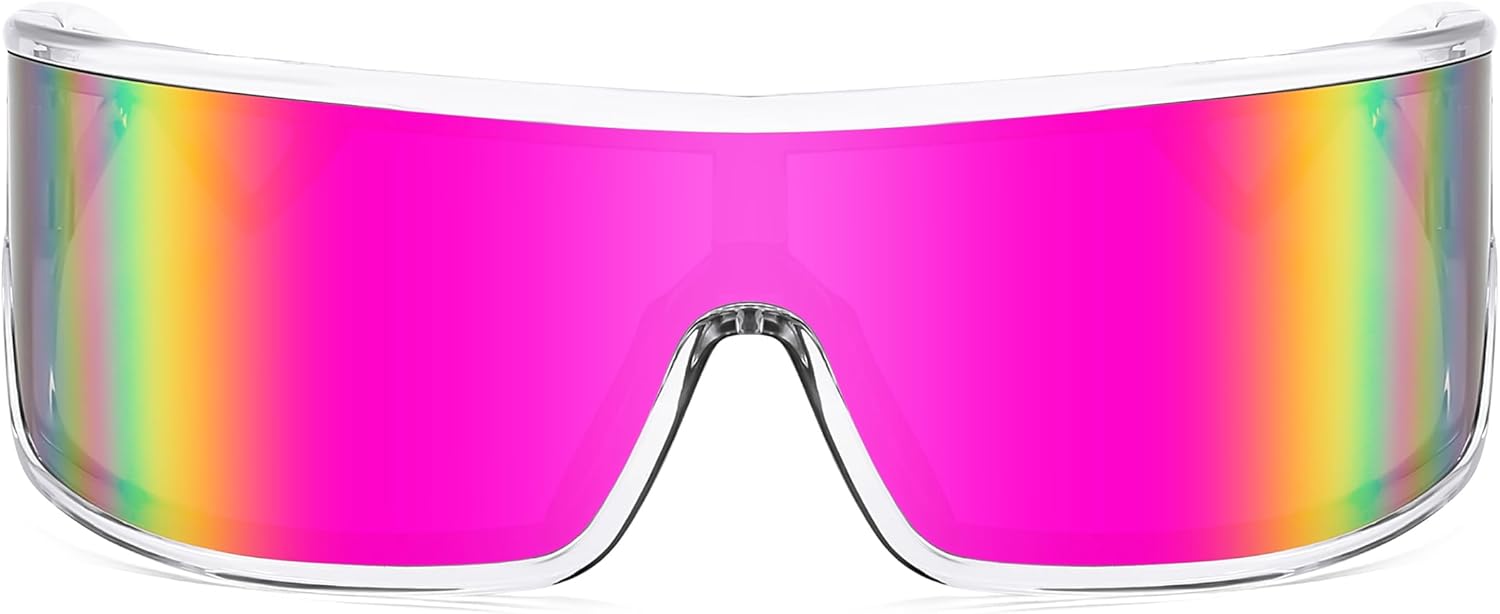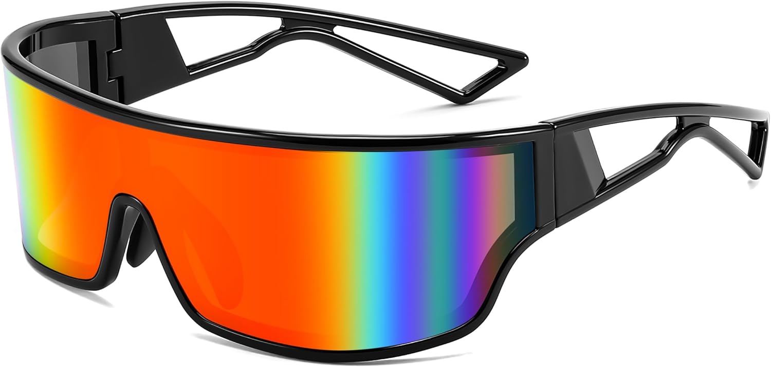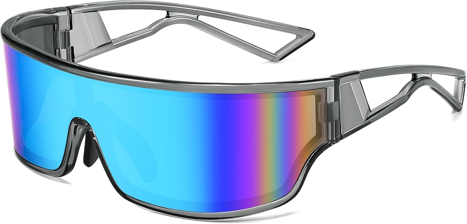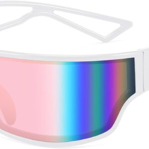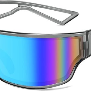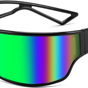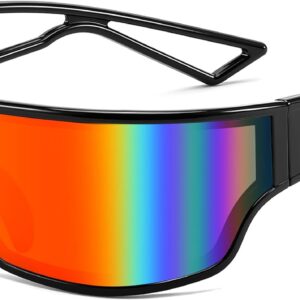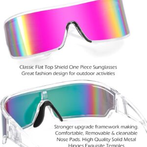 FEISEDY Trendy Futuristic Wrap Sunglasses Flat Top Mirrored One Piece Lens Reflective Sun Glasses for Women Men B0161