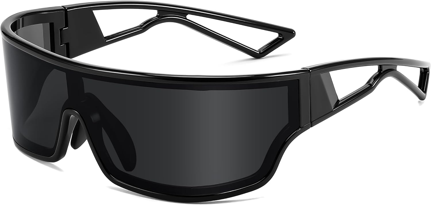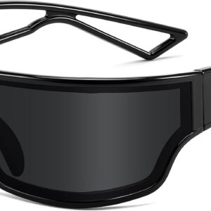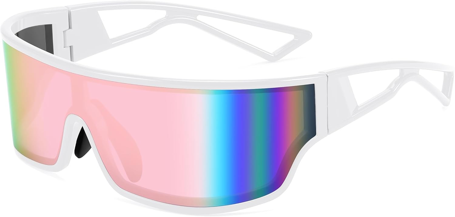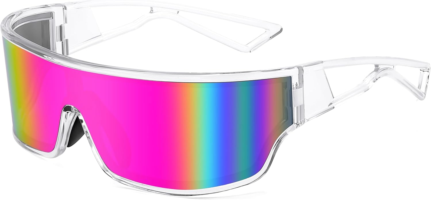 FEISEDY Trendy Futuristic Wrap Sunglasses Flat Top Mirrored One Piece Lens Reflective Sun Glasses for Women Men B0161