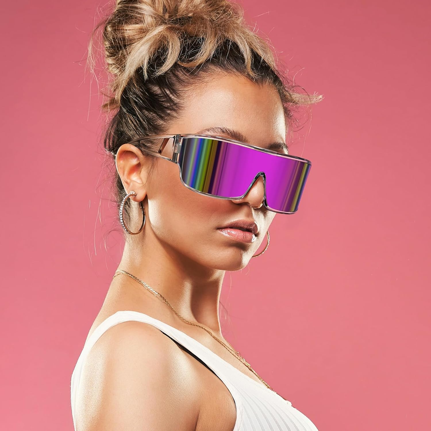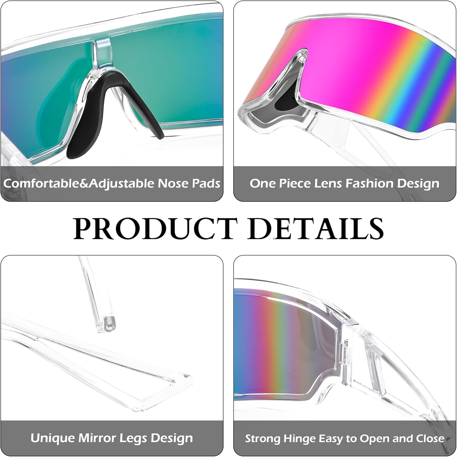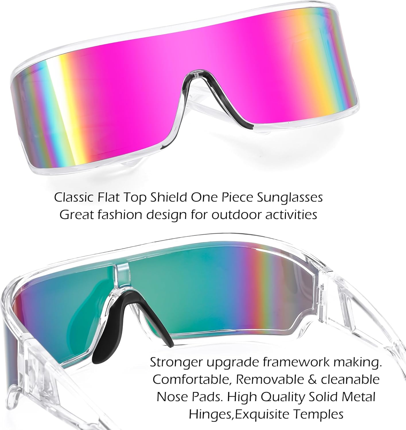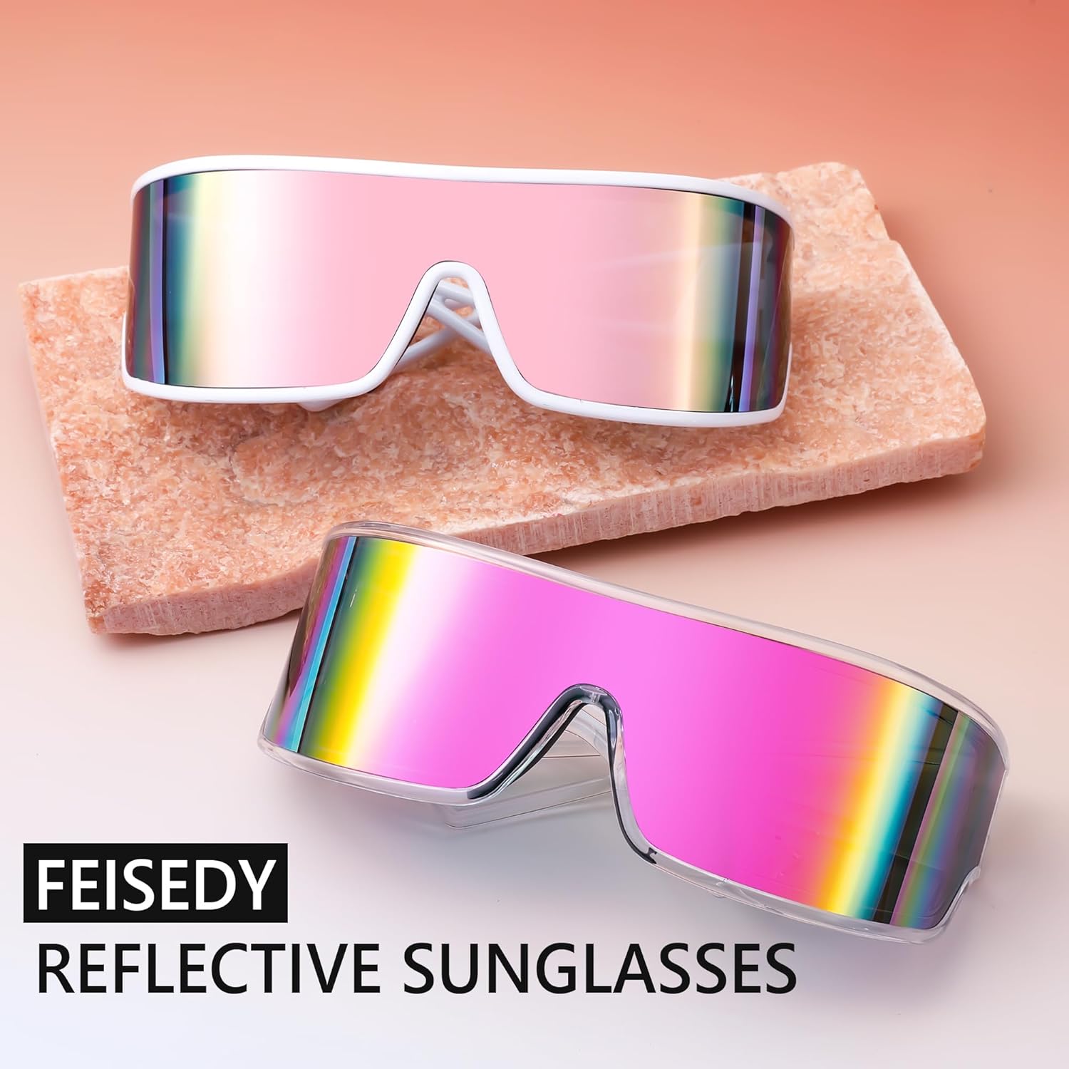 FEISEDY Trendy Futuristic Wrap Sunglasses Flat Top Mirrored One Piece Lens Reflective Sun Glasses for Women Men B0161