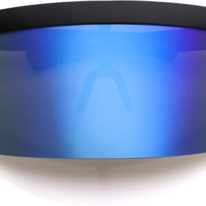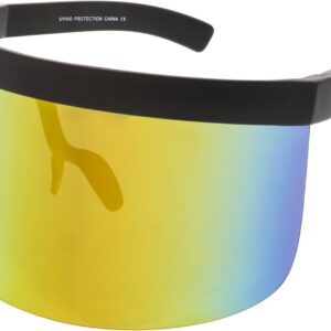 Futuristic Oversize Shield Visor Sunglasses Flat Top Mirrored