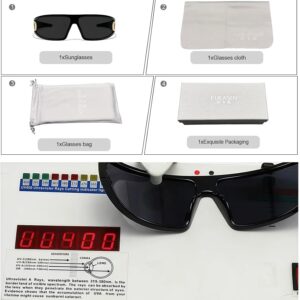 【1、Product Specifications】 Style: KUKASEN Y2K Wrap Around Sunglasses Frame Material: High-Quality PC (Polycarbonate) Lens Material: Impact-Resistant PC Lens UV Protection: UV400 Protection, blocks 100% UVA & UVB rays Colors Available: Black / White / Red / Tea Gender: Unisex (Women and Men) Weight: Lightweight for All-Day Comfort 【2、Product Features】 Y2K Headband Design: Inspired by early 2000s Y2K trends, these wrap-around sunglasses feature a bold, oversized frame with a futuristic visor look, perfectly matching y2k outfits for women and men. Premium UV400 Protection: The durable polycarbonate lenses offer UV400 protection, shielding your eyes from harmful UVA/UVB rays, ideal for outdoor activities like running, cycling, hiking, and driving. Lightweight & Comfortable Fit: Ergonomic one-piece nose pads and headband temples provide a pressure-free, secure fit. Designed to stay in place even during intense movement. Trendy Color Options: Available in stylish Black, White, Red, and Orange, these futuristic sunglasses add a cool statement to any Y2K, streetwear, or rave outfit. Durable & Versatile: Made from impact-resistant materials, these sunglasses are built for long-term daily wear. Great for fashion accessories, sports sunglasses, running glasses, rave sunglasses for women and men. 【3、Usage Scenarios】 Perfect for running, cycling, hiking, golf, driving, and other outdoor sports. Ideal accessory for music festivals, raves, y2k outfits, and street fashion looks. Stylish UV400 sun protection for everyday use, beach holidays, and traveling. A thoughtful gift for friends and family who love trendy sunglasses or 2000s nostalgia.