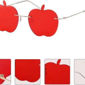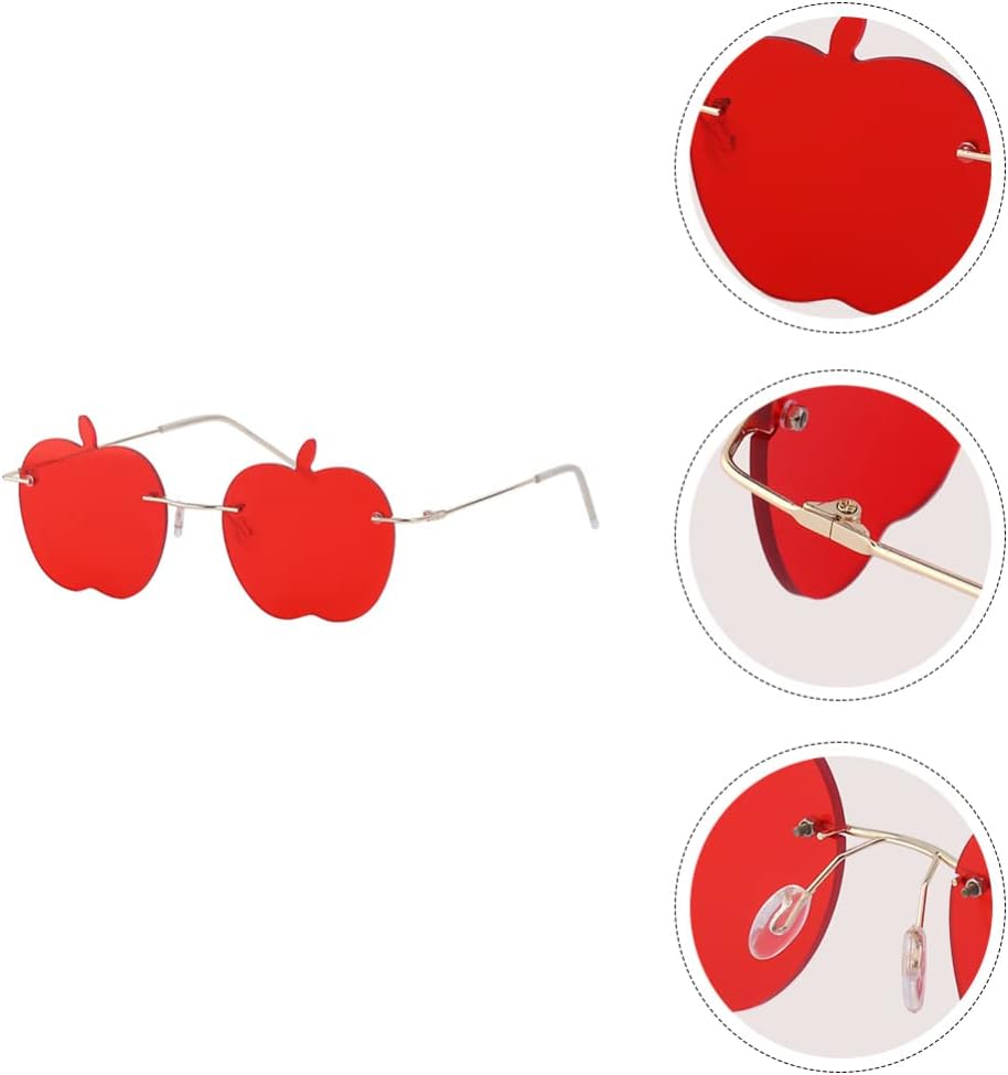 NOLITOY 1pc Funny Sunglasses Xmas Party Glasses Decorative Suns s for Men Narrow Eyes Eyewear Metal Frameless Novelty s Alloy Man Apple Shape Goggles