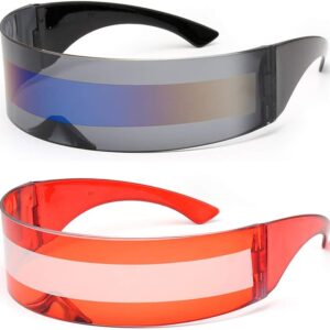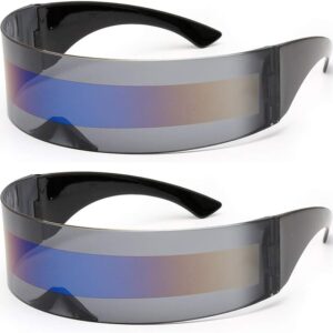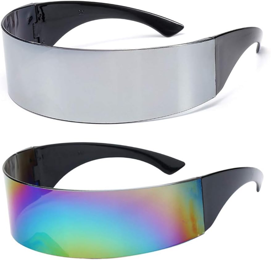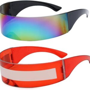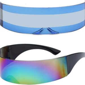 Non-Polarized, 100% Protection Against Harmful UVA/UVB Rays; Semi Translucent Mirrored Lens; Monoblock Shield Glasses; Futuristic Sunglass;