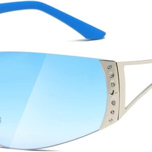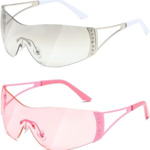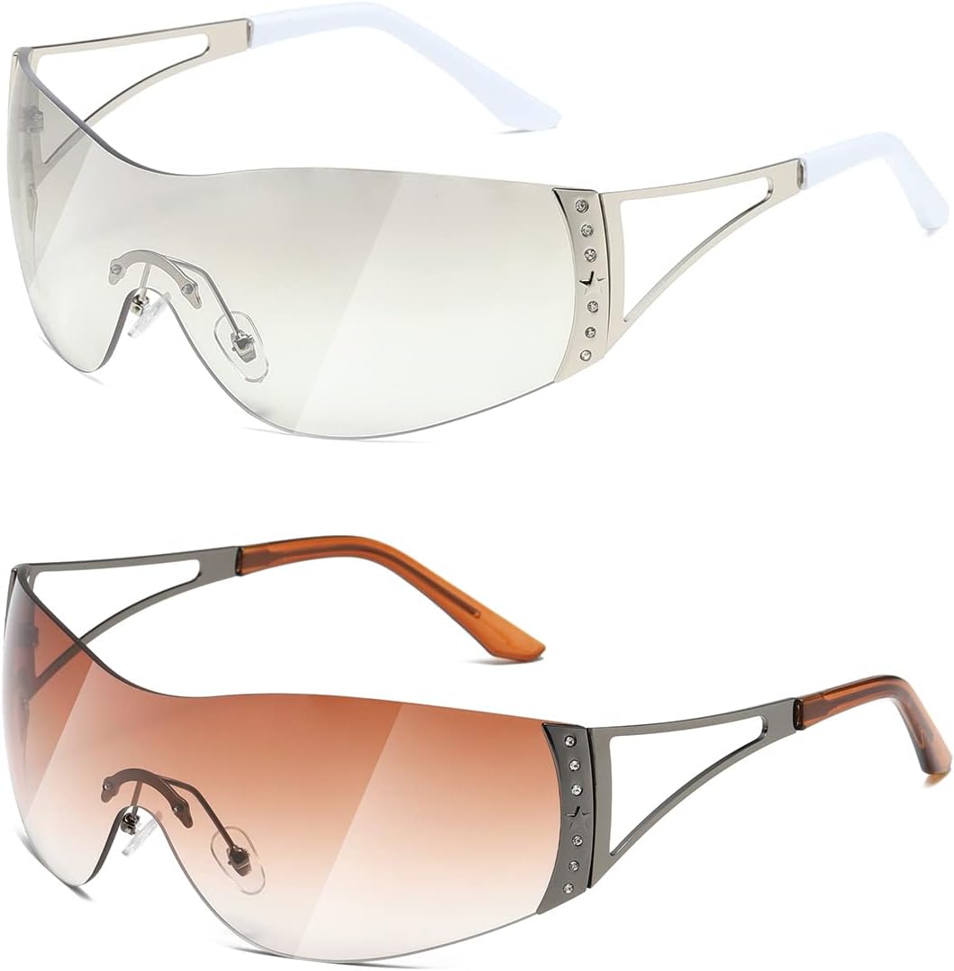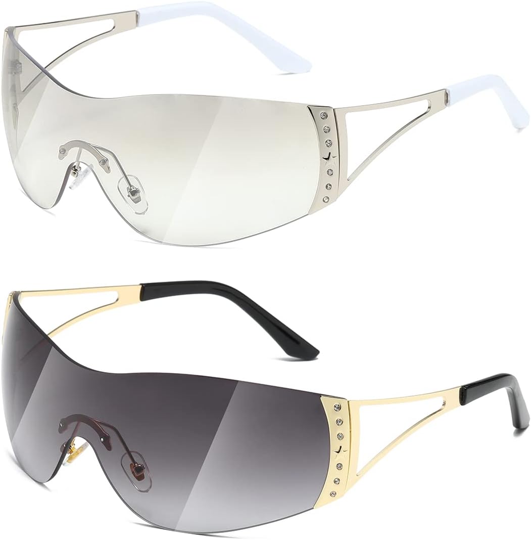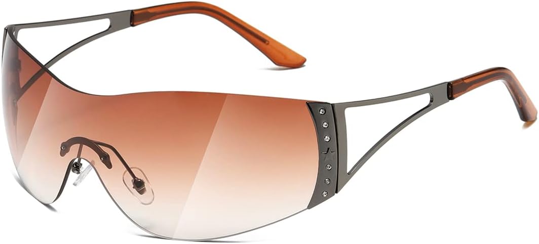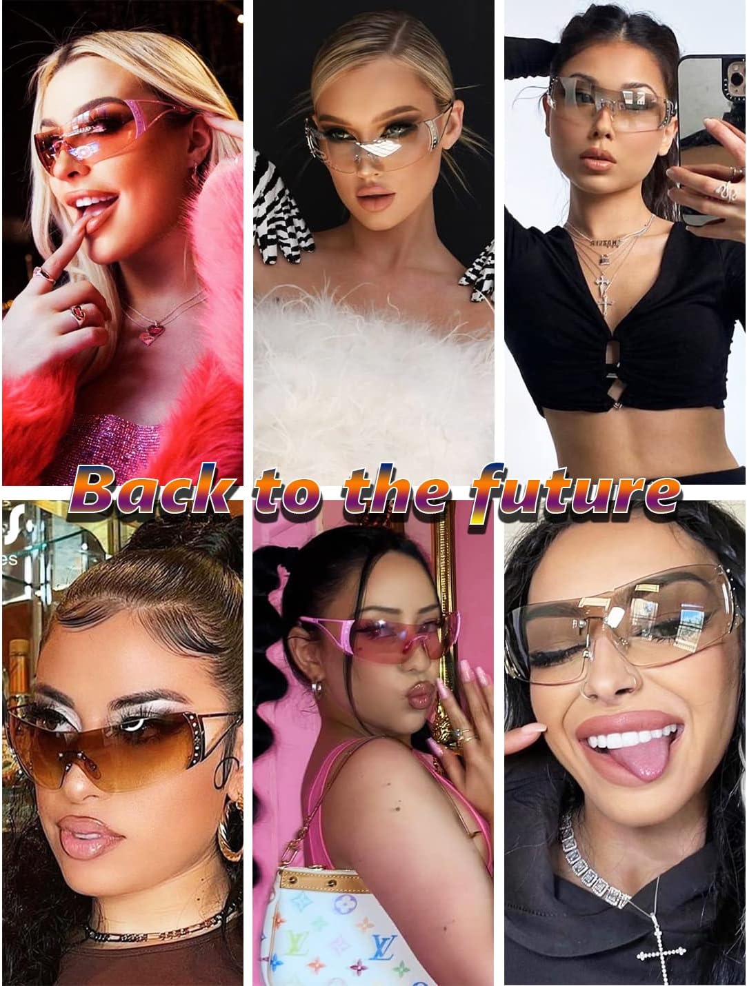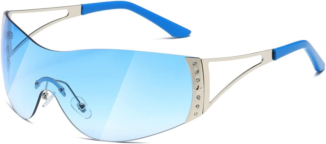 TIANYESY Y2K Sunglasses For Women Men Fashion Shield Rimless Wrap Around Sunglass Gradient Lens Trendy Oversize Sun Glasses