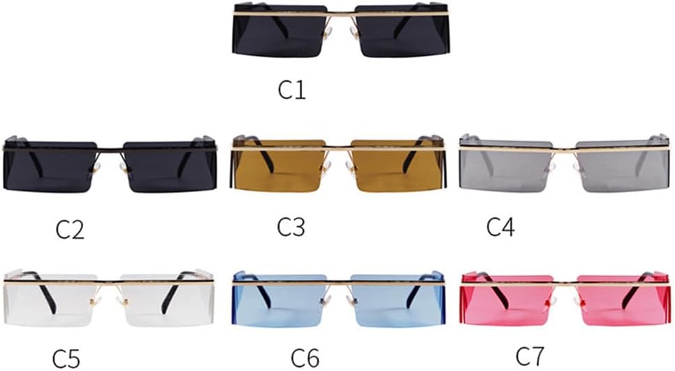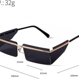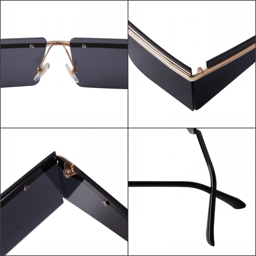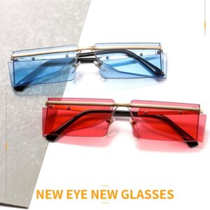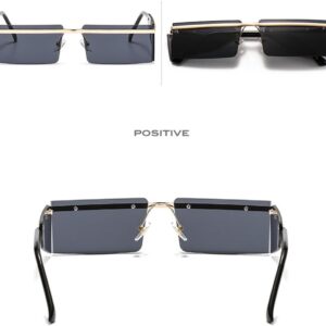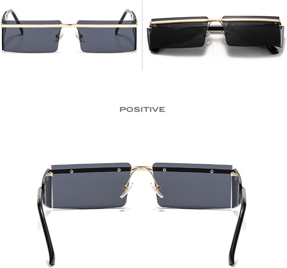 Vintage Steampunk Rectangle Sunglasses Women Men Rimless Mirrored Lens Futuristic Sun Glasses