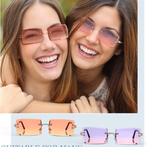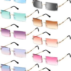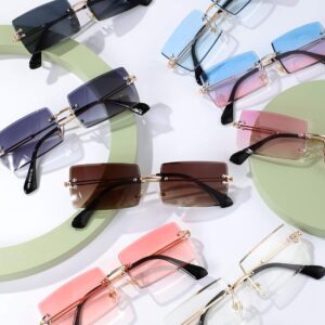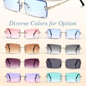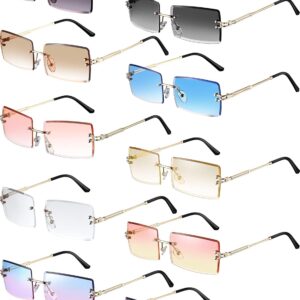 Weewooday 10 Pair Rimless Sunglasses Rectangle 90s Retro Trendy Y2k Sunglasses Frameless Square Glasses Eyewear for Men Women